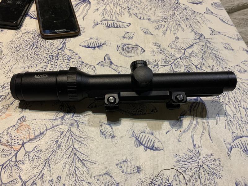 Visor Meopta r1 1-4x22 con retícula iluminada k dot,de carril; se encuentra en Madrid, pero se podría enviar en caso necesario. Precio 400 e.
