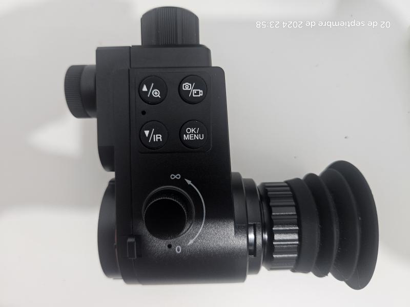 Visor nocturno de 850nm con acople clip-on para el visor. Se puede usar igualmente sin acoplar al visor. Prácticamente nuevo, fue un regalo de reyes y no le doy uso. Puedo enviar un par de videos grabados con el mismo para ver calidad de imagen. Se puede ver y probar sin compromiso. Tiene modo grabador de vídeo con sonido, foto, y aplicación para ver desde el móvil.