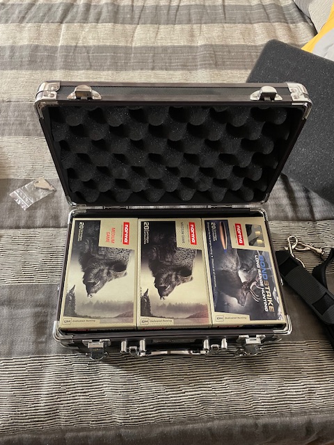 Vendo maletin metalico portamunicion para viajes en avion. Nuevo. Nunca se ha estrenado. Pesa 0,400kg y mide 30x21x10. Capacidad para 3 cajas. 40€.