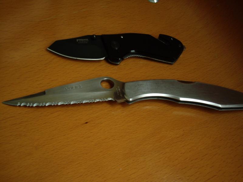 Hola de nuevo, que el otro día estaba apuradillo, y menuda birria de foto que colgué. Ahí va de nuevo la spiderco police, junto a una Fosco que me ha regalado un amigo hace poco.
