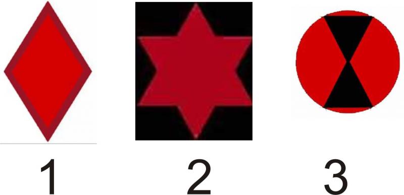 45rd Infantry Division Denominada Blood and firey sus dos escudos mas parecen salir de la parafernalia nazi que de otra cosa, porque mirar el segundo escudo