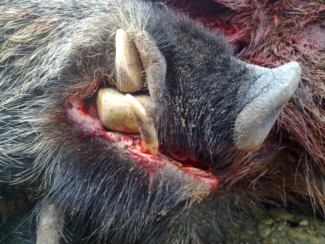 En la foto anterior el Hombre Grande que no cabía en sí de gozo, en esta la boquita del cerdo que rajó a un perro que le estaba ladrando a parado.
