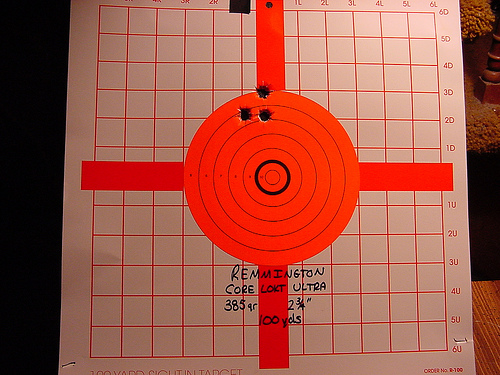 ¿Veo mal o las balas entran de costado? Porque de ser así, no me extraña la dispersión. Sin duda queda demostrado que tu combinado tira de pena con estas balas, algo que suele ocurrir. No obstante me parece que no has disparado mucho con este cañón, que lo tienes bastante olvidado y que no te has molestado en probar varios tipos de munición.
