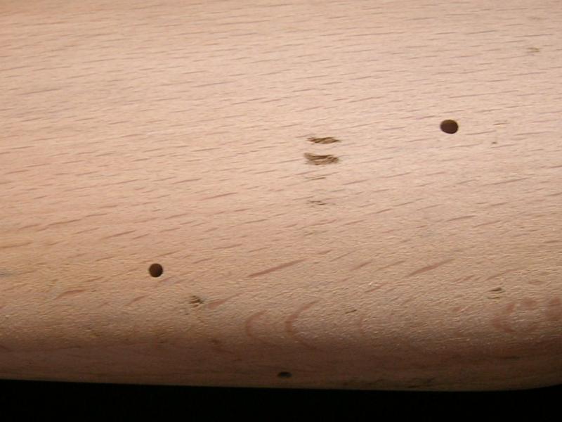 Los agujeros los puedes tapar con masilla para madera, la tienes de color nogal, caoba, etc, depende del color que quieras dar a la culata. Ten presente que estas masillas no admiten tintes al agua o alcohol, ni ceras ni aceites, por lo que tendrás que usar barniz tinte para pintar la culata.