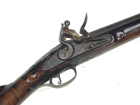 El barril relativamente largo es de 46 centímetros de longitud, calibre .50 y bien cónico y quemado, lo que para un peso ligero y bien equilibrado rifle. El trasero es un 1 ¾ pulgadas de ancho y si no para el siglo 19 (no alterados) Mecanismo de pedernal, la arquitectura general de la pieza sugiere que el rifle fácilmente la fecha en la última parte del siglo 18. La culata tiene la línea de moldeo incisión a lo largo de la cresta que se encuentra en los rifles en la mayoría de todos los sectores de piedemonte de Carolina del Norte, así como la liberación patchbox oculta bajo la fina placa de bronce pie de hoja, que presiona sobre una varilla de empuje momentáneo de la tapa que se levantada por un resorte unido al lado de la cavidad cuadro bastante profunda. El barril de Tang en el rifle es largo, se lleva a cabo con tres tornillos y se extiende casi hasta la punta del peine, un rasgo indicativo de la tarde fusiles Jamestown School. El moldeado forestock es lo que John Bivins marcado en su libro, Longrifles de Carolina del Norte tipo "C", que consisten en una línea incisa con una zona de alivio más arriba, la creación de una "cuenta" a lo largo del borde superior del relieve tallado de moldeo forestock. Este es un diseño que parece ser utilizada más comúnmente en el área del condado de Randolph-Guilford. La culata tiene una opinión similar, aunque no idénticas, moldeo línea incisa, terminando en una bonita lengua "corderos" remate tipo a ambos lados a la ampliación posterior del gatillo. A partir de la prórroga frente al gatillo es una placa de desgaste que continúa a lo largo de la parte inferior del antebrazo, meta en la plataforma del dedal entrada trasera. Esta placa de bronce largo es totalmente de entrada y viró con 20 clavos de hierro la celebración de la característica funcional y decorativo en el lugar. El rifle parece estar en las Naciones Unidas tocado condición, sin la restauración evidente. Incluso la baqueta cónico con un minúsculo gusano de hierro forjado de remolque parece ser del equipo original.