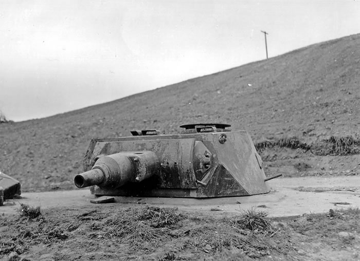 es una rareza en las playas de Normadía, la torreta de la fotografia, debía montarse sobre el VK3001, cuyos chasis, se destinaron a dos cazacarros en el frente del este, de las seis torretas terminadas cuatro terminaron como defensas estáticas en el Atlantikwall y dos en el Westwall.