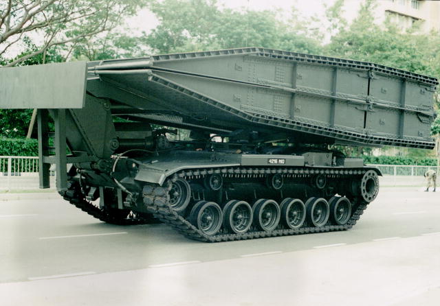 - Carro puente (mod. ?) (Singapur). Utiliza el mismo sistema que el MTU-72 ruso, el cual despliega primero los estremos y luego lo desliza sobre las guias hasta posarlo en el suleo.