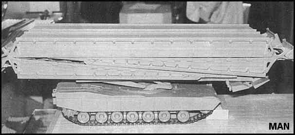 Un sistema de plegado de puente similar al sistema Span ESAB indio, es el nuevo puente de la alemana MAN, el HAB AVLB Wolverine montado sobre el carro Abrams.(FOTO 1ª)