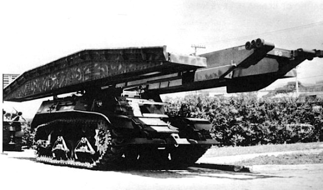 Me refiero al carro lanzapuentes o en argot ingles Armored Vehicle Launched Bridge (AVLB) ó Vehiculo Acorazado Lanza Puentes.