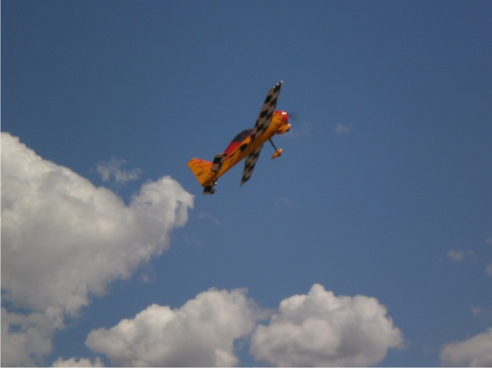Lo que fue fantastico fu la exhibicion de los aviones de aeromodelismo, sobre todo, uno que en la foto es de color amarillo, manejado por un chaval joven que en otras virguerias hizo que el avion se parara totalmente en el aire en vertical a medio metro del suelo, durante casi 1 minuto y trasladandose horizontalmente. Fue fantastico.