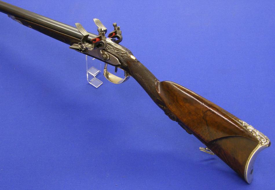 Puees bueno ... un arma francesa de doble cañon y doble llave de silex por Hubert Le Clerc de Paris hacia 1.770 con los aparejos montados en fina plata labrada. Calibre de 14 mm. y un largo de 125 cm. Como es norma de esta casa, en muy buenas condiciones.