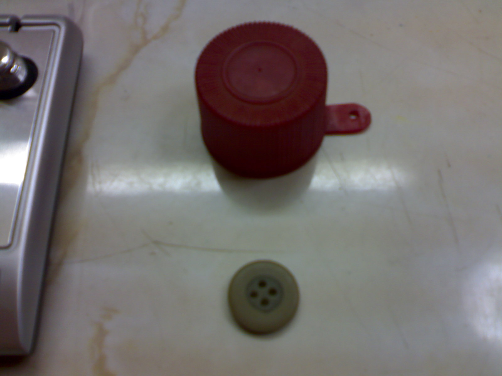 De uno de los botes de “aceite milagroso” que tengo, le he quitado el tapón que, tiene a su vez una pestaña donde va colocado el prolongador del spray para el aceite y que, os servirá también de apoyo pora poder cogerlo, un botón que os venga bien con el diámetro del censor de la balanza, ojo, tener cuidado con la “parienta” al quitárselo de la costura, lo pegáis a la base del tapón y ya tenéis todo un cacito de buen tamaño, que pesa muy poco, encaja a la perfección en la balanza y, porqué no decirlo, está muy “chulo” y funciona de maravilla. Que conste que tan solo lo he hecho para que lo veáis ya que, a mí me vale con el “mini cacillo” que trae.
