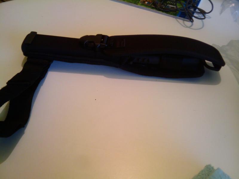Y la segunda es su funda, la cuál posee una cubierta, pensada para que los paracaidistas no se enganchen en los saltos, pero que hace que el cuchillo sea un completo incordio el portarlo, y aunque esa cubierta se le puede quitar, queda el enganche plástico de cierre sobresaliendo de la funda, haciendo muy fácil un posible enganche involuntario.