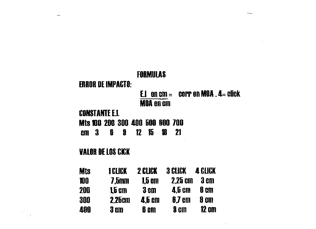 Error de impacto en centímetros = corrección en MOA X 4 = click de corrección