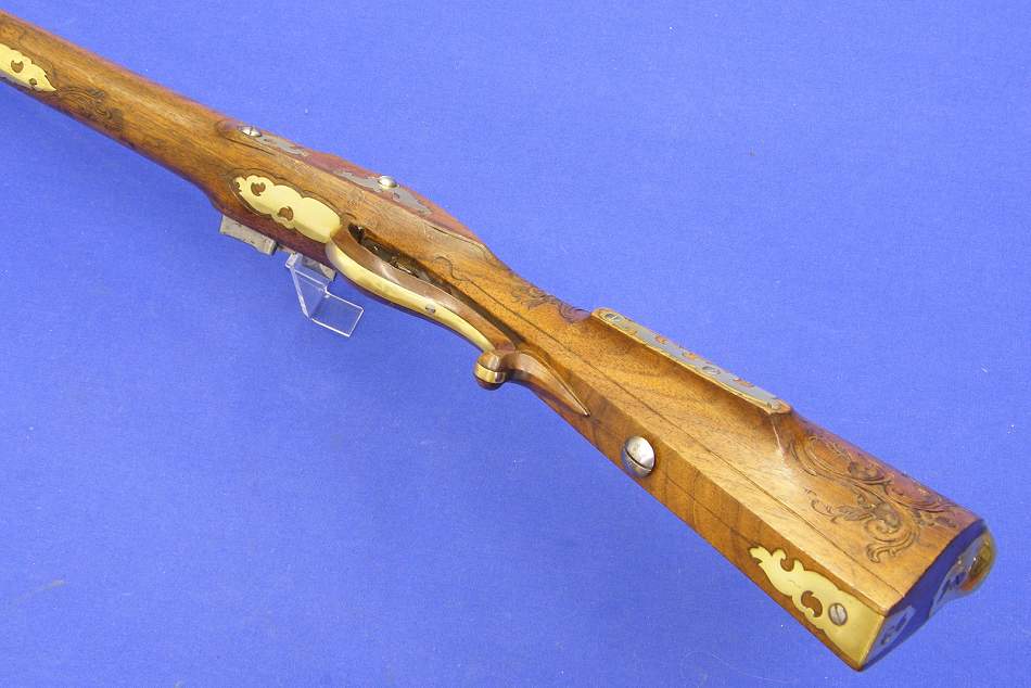 A very nice early 18th century German flintlock gun, signed by Andreas Gans in Augspurg, caliber 15 mm, length 126 cm, in mint condition