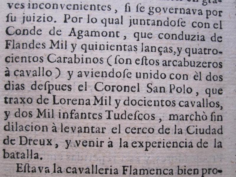 ...conducía de Flandes mil y quinientas lanças, y cuatrocientos carabinos (son estos arcabuzeros à cavallo)...
