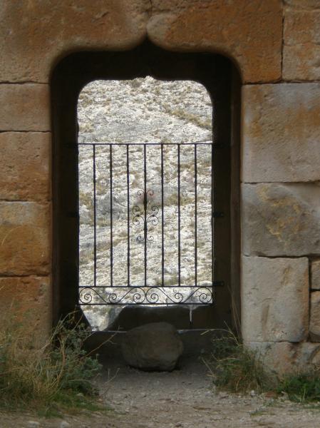 Si te asomas al arco puedes contemplar la vista de un cañón bien profundo que rodea la parte trasera del castillo.