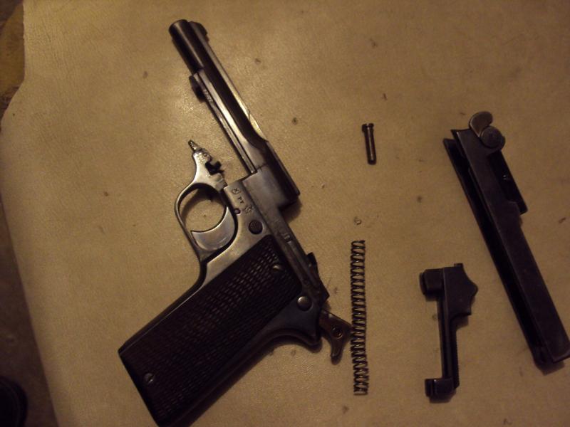 Hola quien me puede ayudar con una pistola star calibre 32 creo que es del año 1914 la desarme solo parcialmente el carro el resorte pero salio un pasador que nose donde ba lo coloque en el resorte del carro. pero no prepara o no pasa bala ala recamara envie una foto desarmada agradeceria buestra ayuda...sergio de santiago de chile