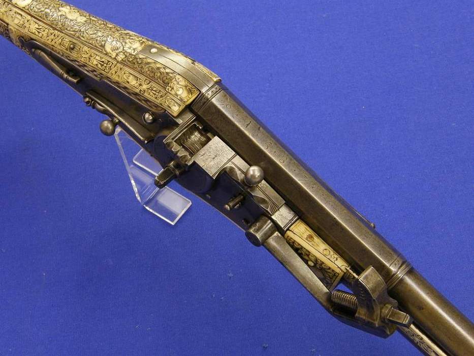Una rara pistola de percusion italiana de retrocarga Sistema Marelli, firmada AGOSTINO MARELLI A MILANO, calibre