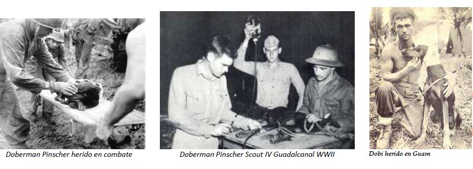 Es curioso apuntar, que la mayoría de ejemplares utilizados correspondían a la raza Dobermann, no muy conocida por otra parte en los años 30 y 40 del siglo pasado. Pero los Marines sí los conocían y tenían muy claro que perros querían llevarse al campo de batalla.