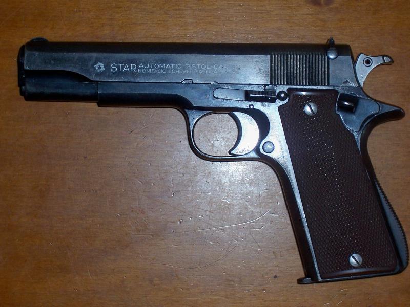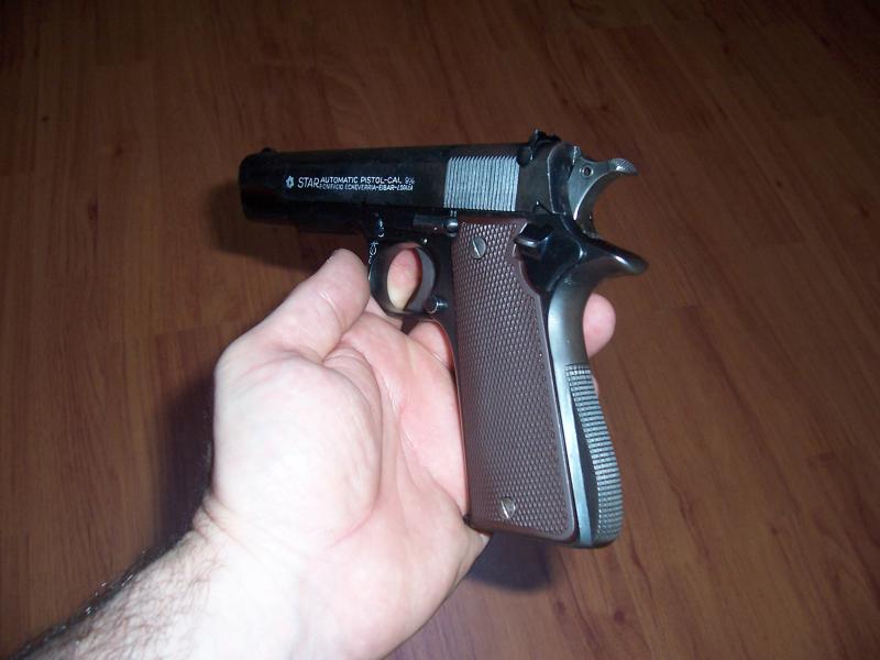 Se trata de una STAR A de 1934 (pacopi tiene una igual con el escudo de la Guardia Civil), que me regaló un compañero de oficio y que a el se la regaló alguien con titulo nobiliario de Badajoz, que no recuerdo, que la compró cuando empezó la Guerra Civil del 36.