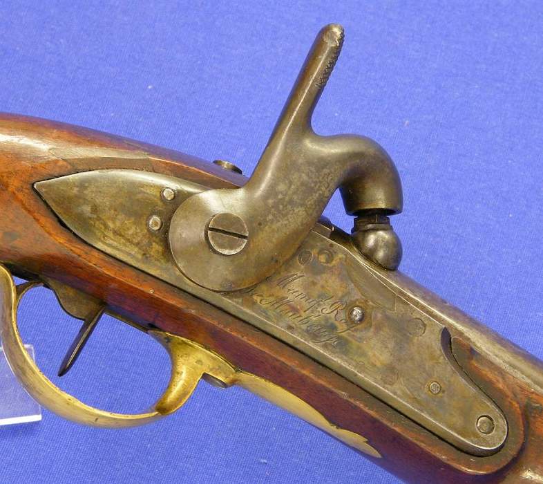 A very nice and scarce French Pistol M 1816, Garde du Corps de Roi, converted to percussion, signed Man. Royal de Maubeuge, cal 18 mm, length 37 cm, in mint condition.