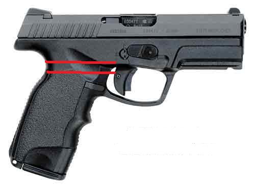 Para mí, el gran problema de la USP es que la zona marcada sobresale demasiado, si se pudiese recortar y que la horquilla de la mano quedaraún poco más alta, quedaría un arma de PM. Igual le quitaría algunos clientes a Glock.