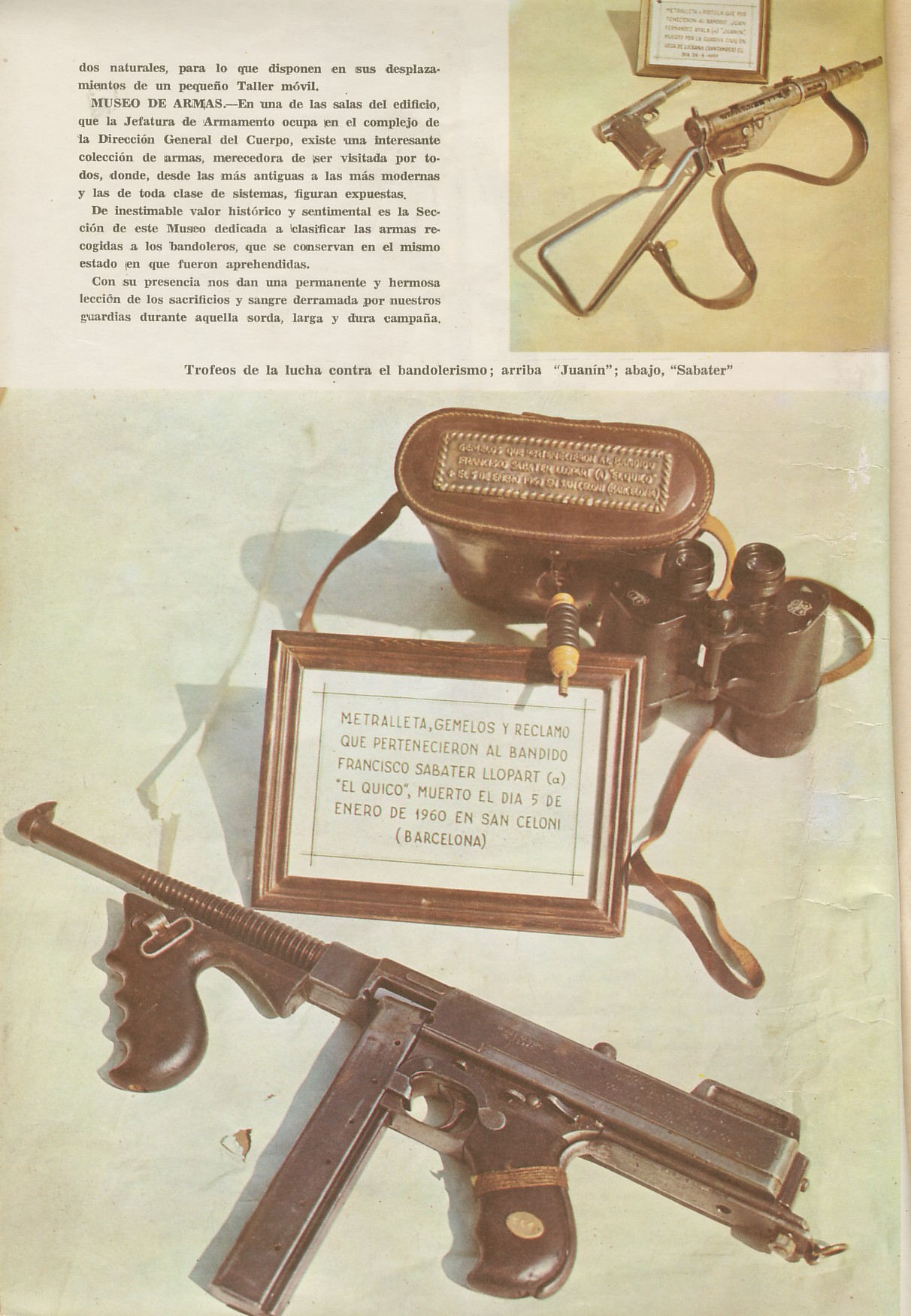 Pues eso... Como historiador estoy intentando buscar la Thompson 1921 del Maquis Francisco Sabaté i Llopart alias "Quico". Fotografiada en la Revista de la Guardia Civil, numero 307 de 1969. Estaba depositada en el museo de la Guardia Civil, y allí podiamos observar esta parte de la historia de mi pueblo. De un tiempo a esta parte, dejo de exibirse y al parecer nadie sabe nada de ella. Agradecería cualquier información a respecto.