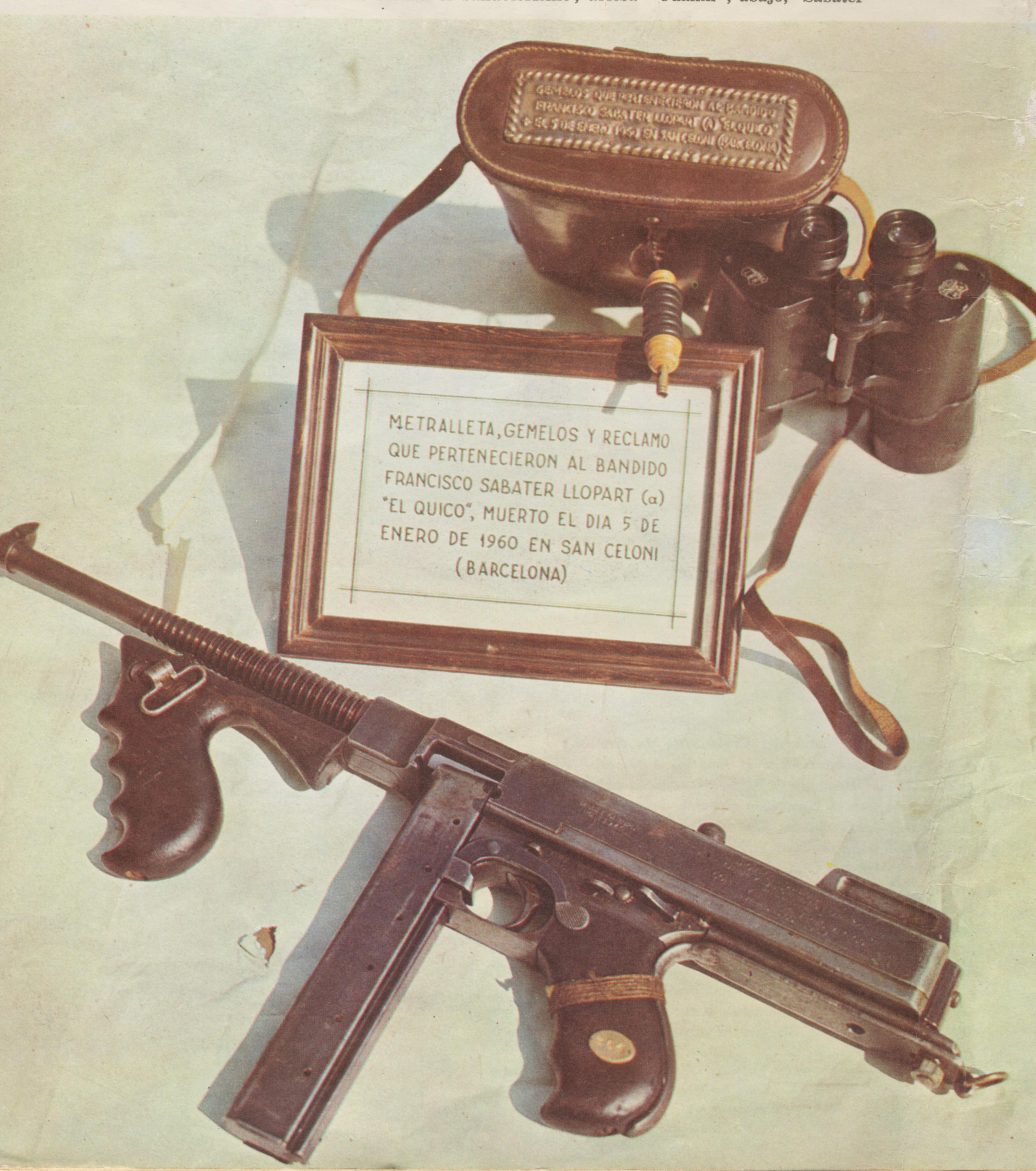 Efectivamente es la Thompson 1921, pero la de Dillinger, lleva cargador de tambor y la de Quico Sabate era de petaca. Ademas llevaba puesto un herraje en la empuñadura para poderla llevar oculta bajo la ropa.