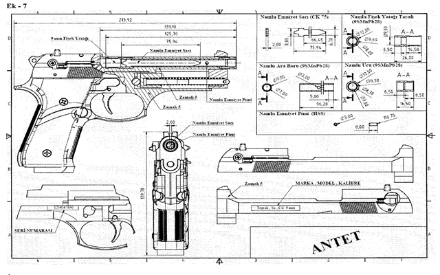 se examinan en términos de los principios de la producción laboratuvarlarınca penales o policiales. Examinó un número de armas se sellará