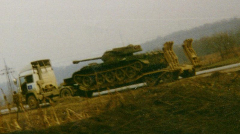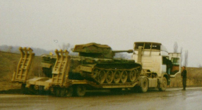 barcaza T55 con torre de M18 Hellcat....serbio.....