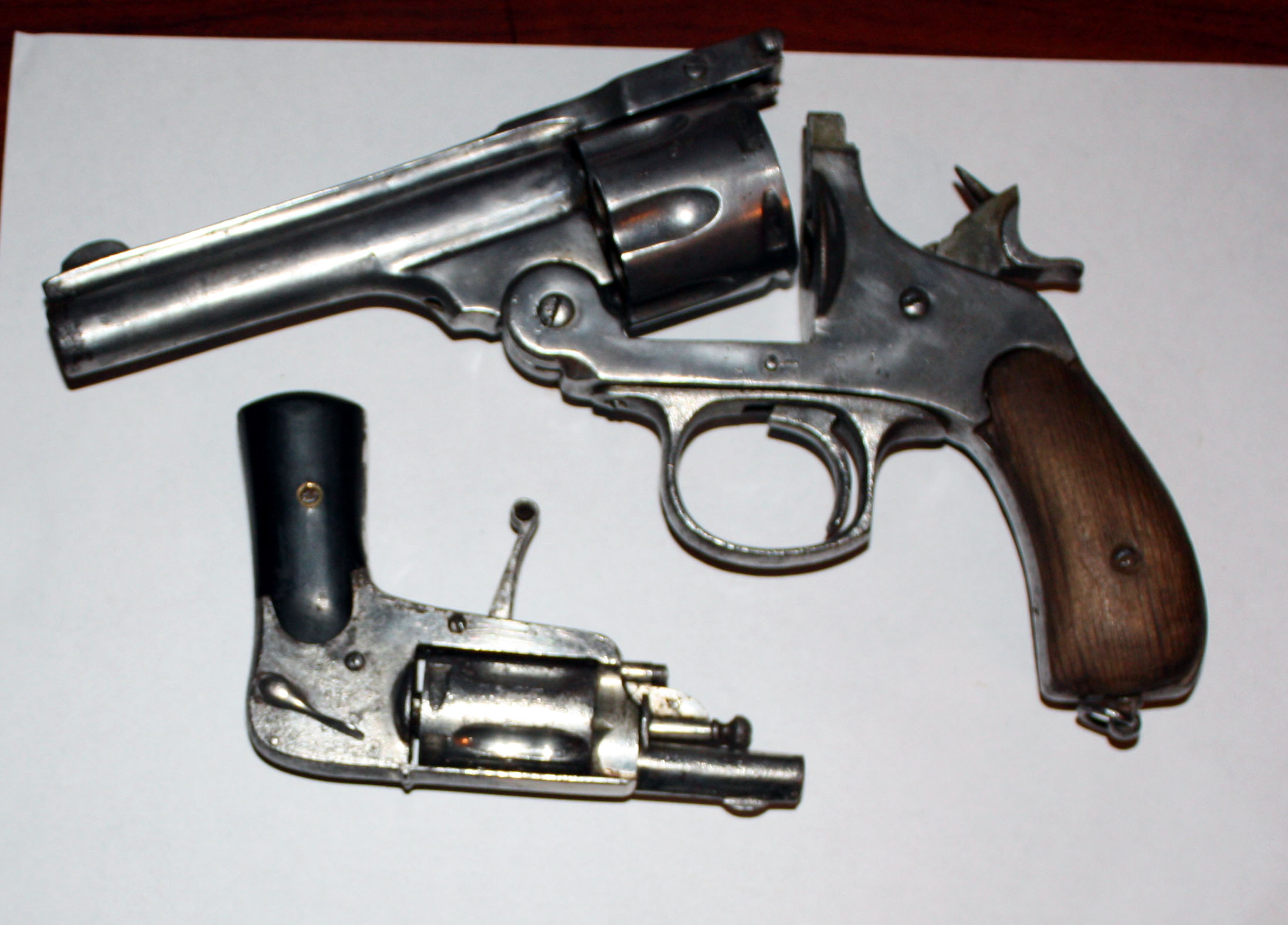 El revólver pequeño es un velodog, posiblemente de 6.35 de calibre.