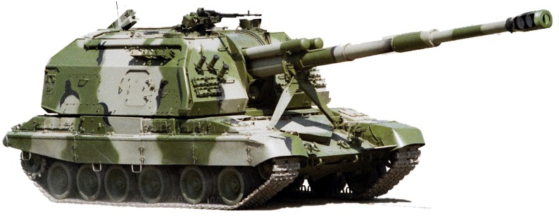 Bueno, no iba yo muy perdido con el tema de la identificación de los materiales, a excepción del obús “autopropulsado”, que calza el viejo obús de campaña M1963 D30 Lyagushka de 122mm., nada que ver con los modernos 2S19 MSTA ATP de 152 mm rusos.