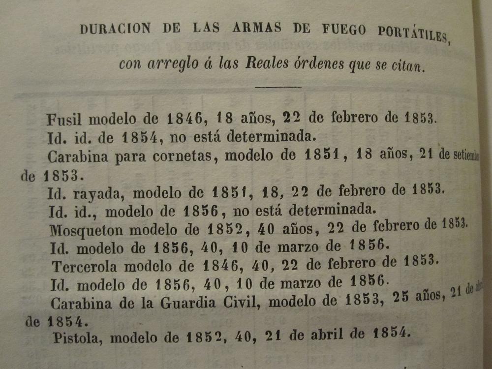 Resulta curioso que hubiera aun fusiles modelo 1846 en los almacenes, a las alturas de 1876, más teniendo en cuenta que su duración fue establecida en 18 años mediante R O de 22 de febrero de 1853, lo que implica que una cierta cantidad de ellos permanecieron nuevos.