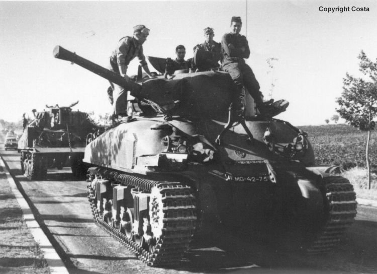 estos carros son los que en su dia identifiqué como M4A1 iniciales (cañon de 75mm, barcaza fundida y escotillas de barcaza pequeñas) pero con cadenas de RAM canadiense...mismos carros que los que se ven en la serie "Hermanos de sangre"...