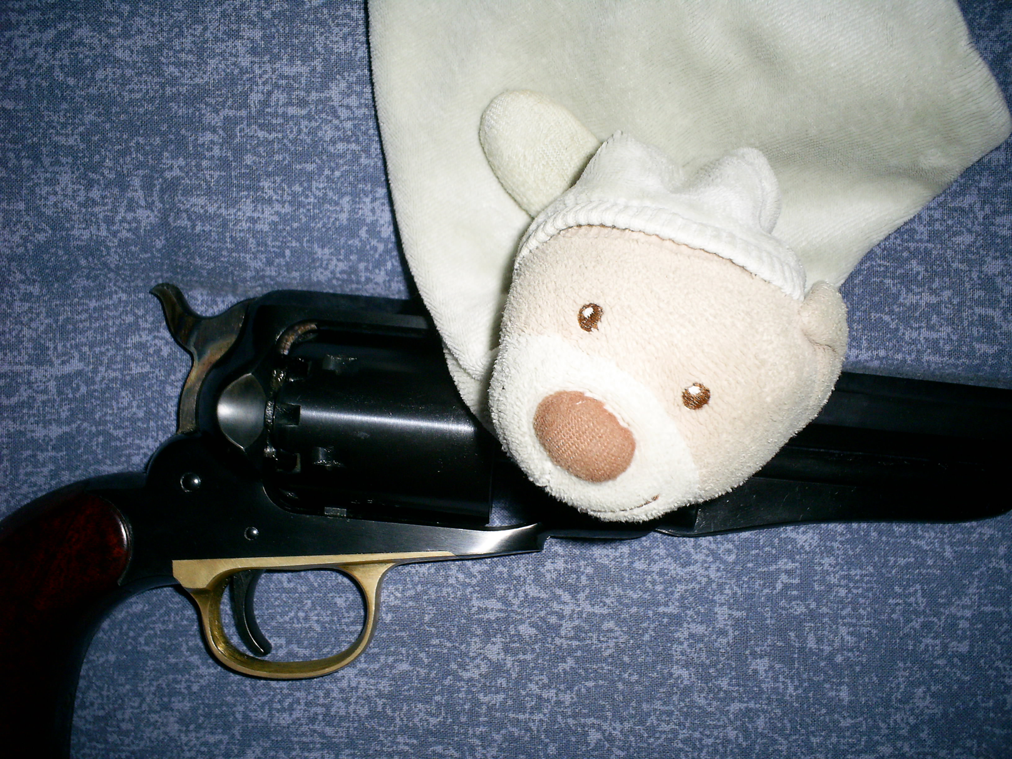 No, no es una pieza, es la parte esa del revolver que es como una media luna, por el cual te da acceso a poner los pistones en la chimenea, esque no se como se llama, bien pues esa parte tenia el pavon un poco desgastado y rayado a consecuencia de eso, de pasar los pistones por hay para introducirlo en la chimenea, decidir de retirar es pavon de esa parte, y volver a pavonarlo yo para sanearlo...