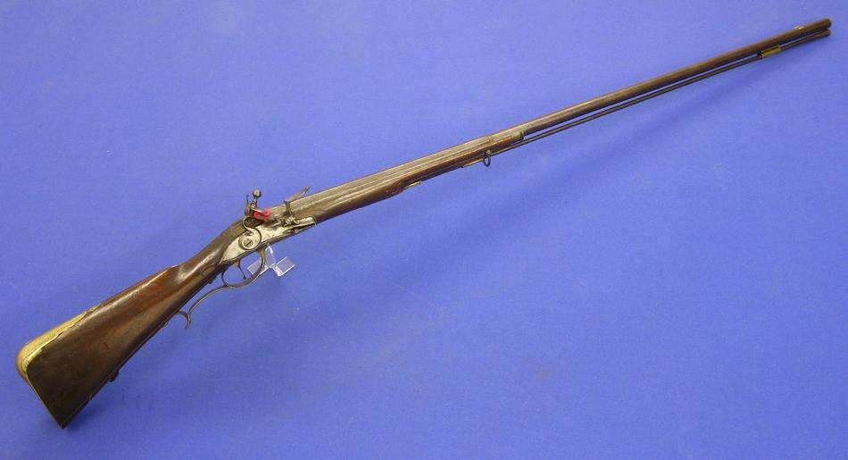 Un buen fusil de pedernal aleman del siglo XVIII en calibre 15 mm. Con anima estriada, longitud 122 cm. En muy buenas condiciones. Precio 2800 euros.
