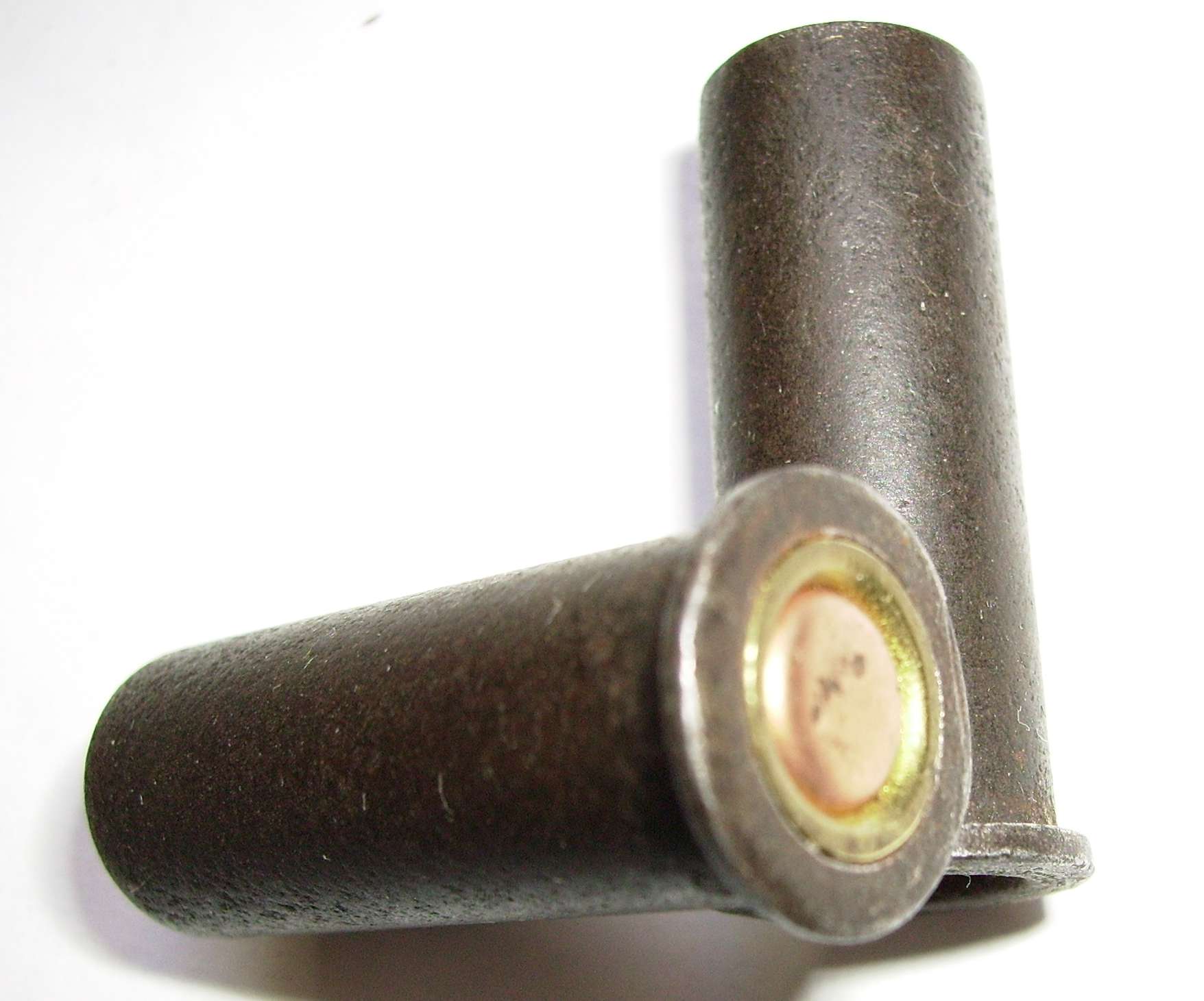pues este otro que tengo del 410 es de hierro también torneado y este me vinieron tres uno cargado , supongo con perdigón pues lleva una especie de tapón no sabría decir de que .