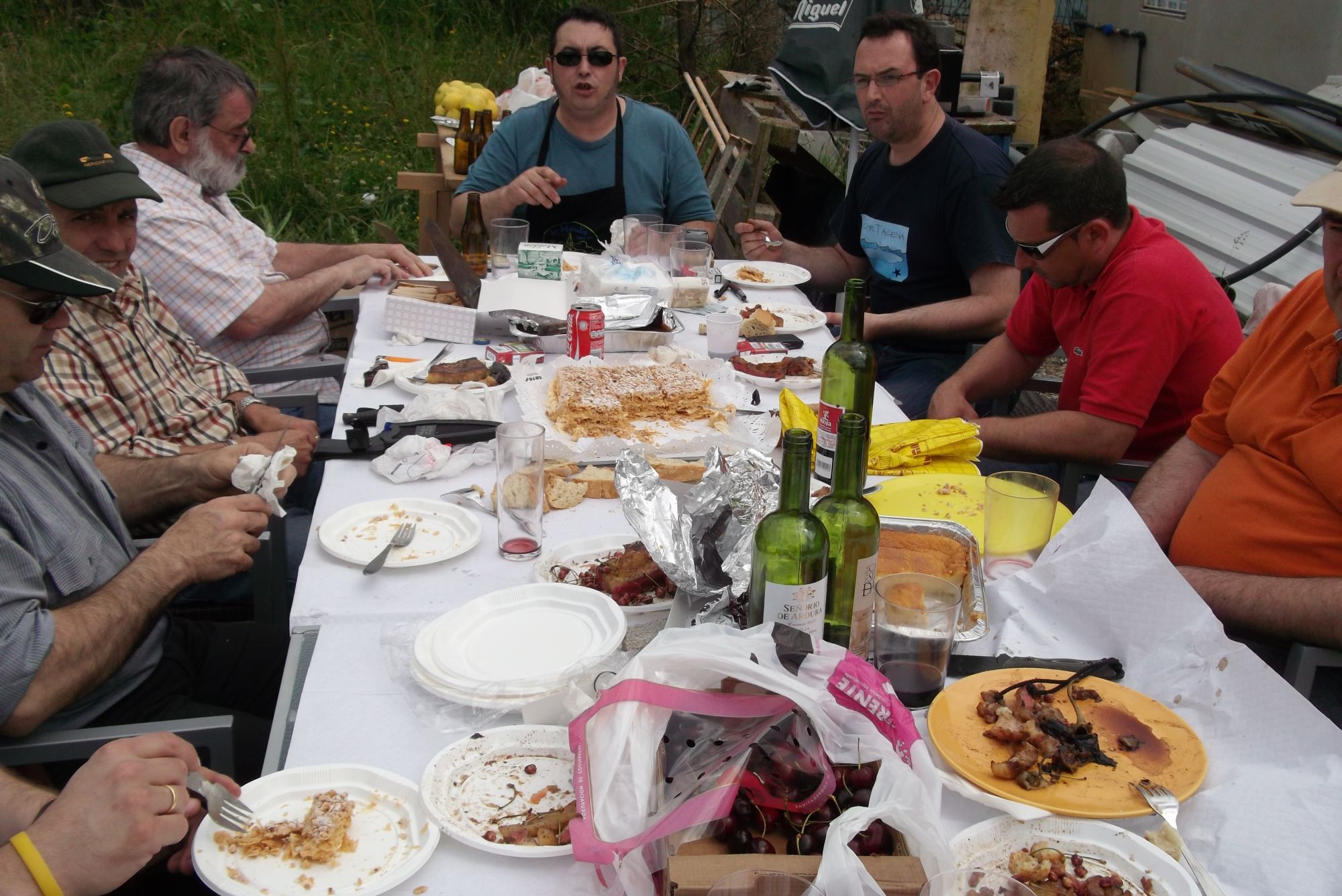 Graciosa anecdota con un jabali corriendo detras de una oveja en un monte cercano a donde celebramos el almuerzo.