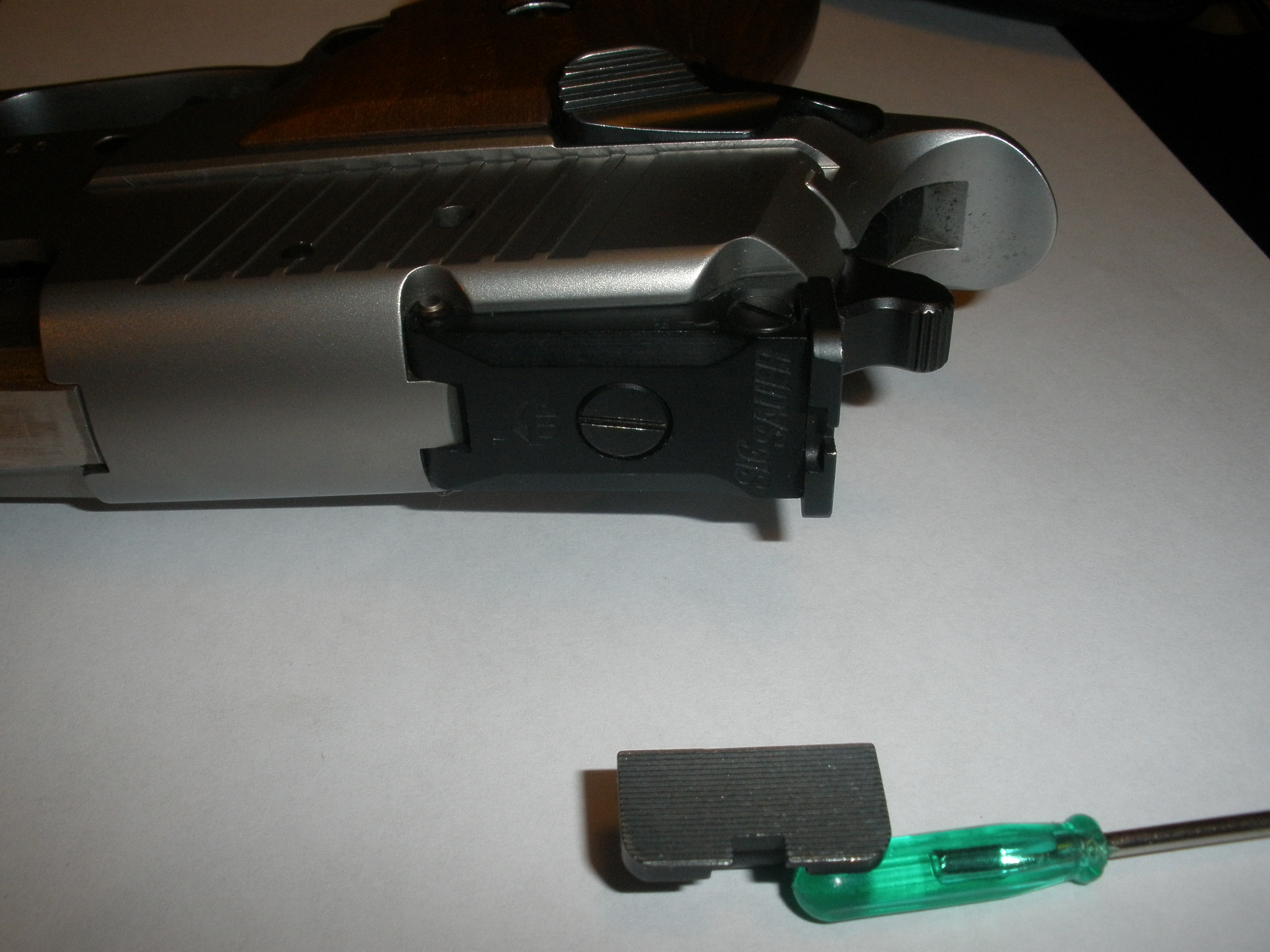 tengo una Sig Sauer P-226 X Five y quiero cambiarle el alza que viene de serie por otra con menos luz.