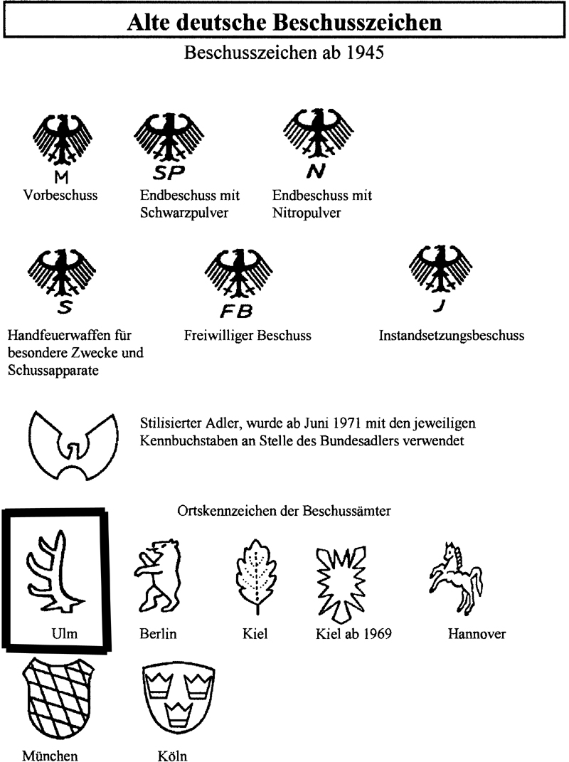 Es el equivalente al WaA (Waffenamt) para armas nuevas de fábrica. He puesto también el punzón de ULM, para que se vea que no tiene nada que ver con los que he mostrado.
