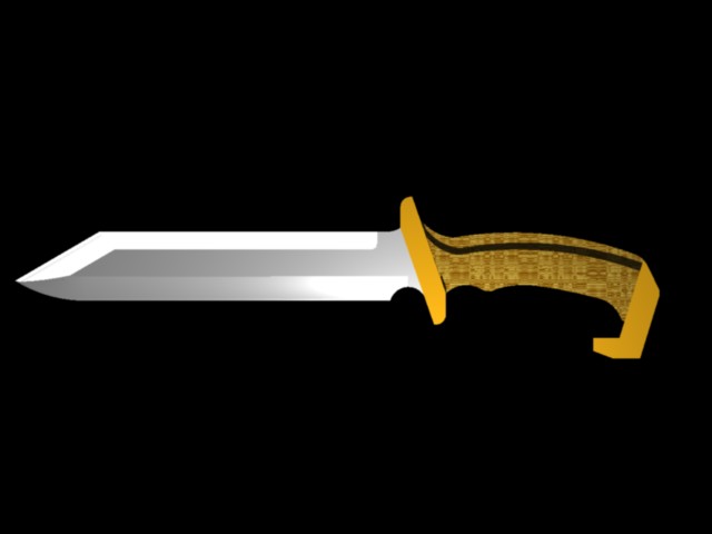 La empuñadura es la del cuchillo Rambo III, como mi anterior diseño, y la hoja más larga que el modelo original smoke-jumper, con un contrafilo añadido.