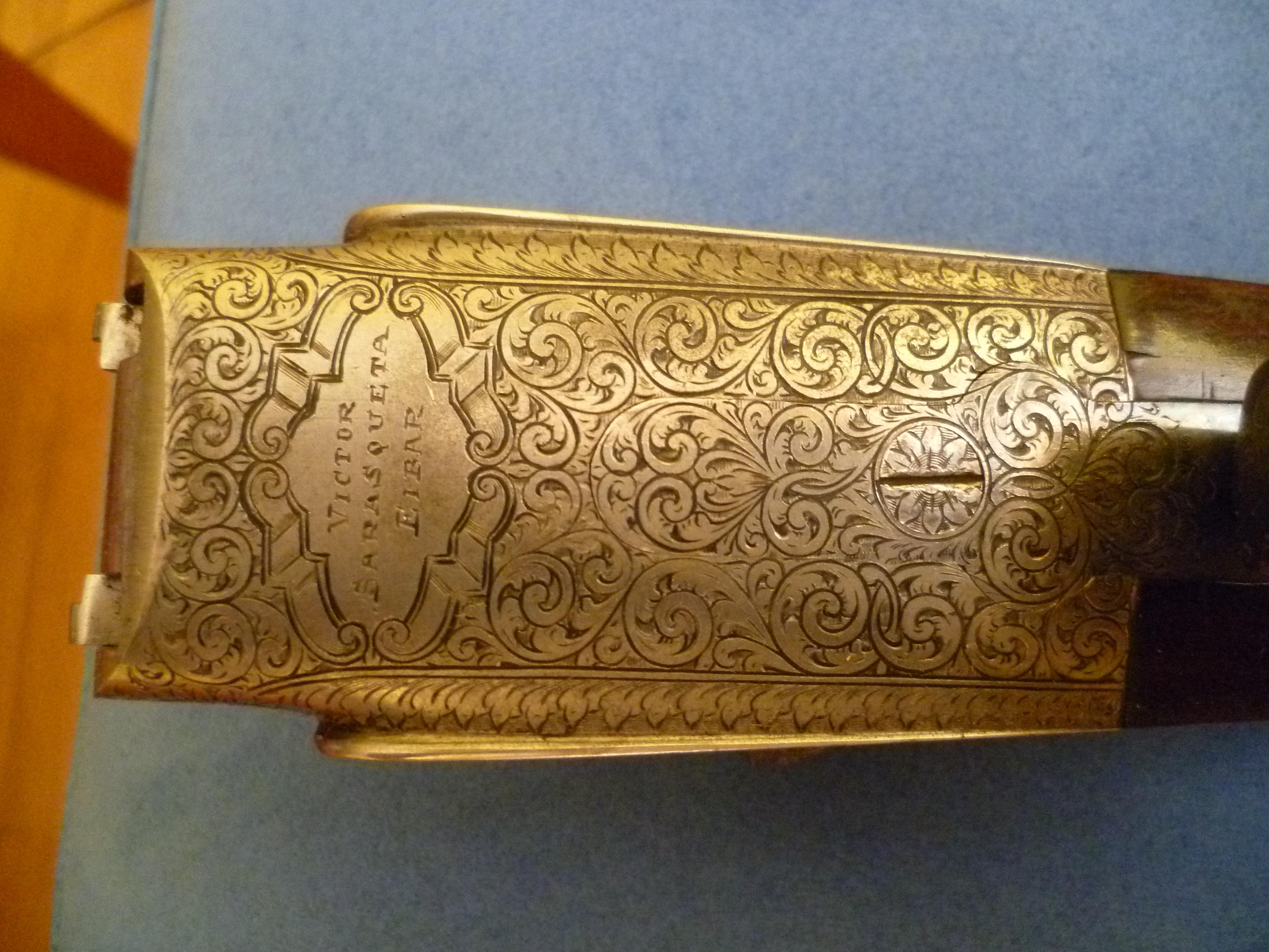 Recientemente he heredado de mi padre (todavía vivo), una escopeta Víctor Sarasqueta que heredó a su vez de mi abuelo. Me dice que es una escopeta de Víctor Sarasqueta Suinaga y que es muy buena, pero desconoce muchos datos. Esta escopeta ha trabajado durante muchos años cazando palomas, codornices, conejos, liebres, alguna perdiz y varios jabalíes… y a pesar de todo sus ajustes son perfectos y está como el primer día, (hay que pavonarla y algunas cosillas…). Mi padre siempre la prefirió a las modernas, sobre todo a las superpuestas porque encañonaba mejor la caza. No tengo ninguna intención de venderla, pienso conservarla por el valor sentimental y por sentirme mero depositario y no propietario, pero me gustaría saber algo más sobre ella, año de fabricación, modelo, calidad, y cualquier información que puedan aportar. Si tienen a bien ayudarme les adjunto fotos de la escopeta para su catalogación.