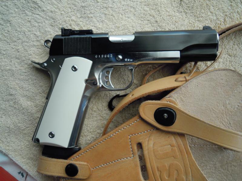En una .45, como gusto pero que muy personal, me gustan las de marfil, pero autentico, no las de plastico, lo malo es el precio prohibitivo que tienen, y la prohibicion de no exportar fuera de USA.