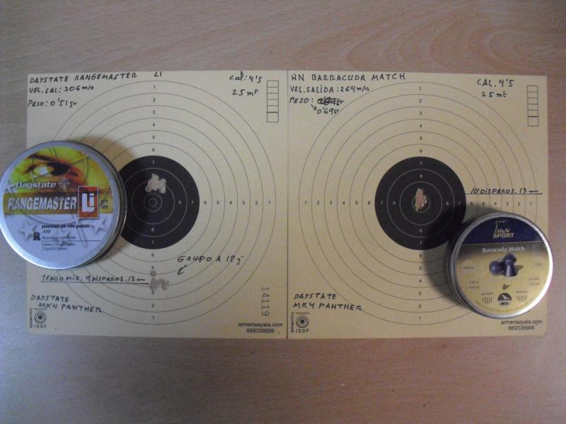 En tercer puesto y con agrupaciones de 12 y 13 mm respectivamente : El Daystate Rangemarter Li y el HN Barracuda Match :