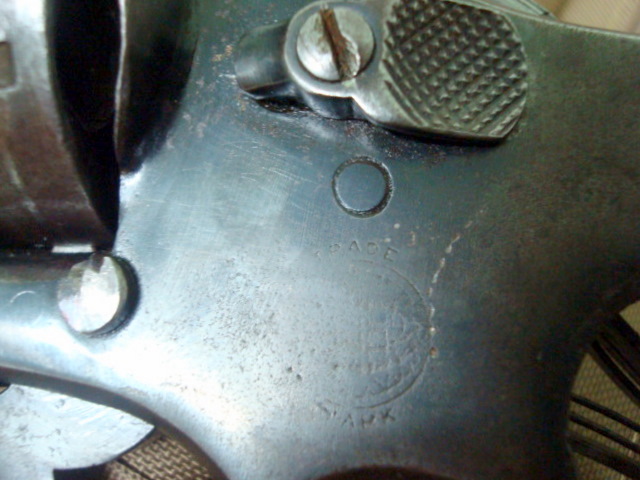 Desde mi punto de vista creo que pudiera tratarse de Mod 1917,no obstante existen algunos detalles,como el alojaniento de la varilla extractora bajo el cañón y el muelle real en "v",mas propio de los Colt, que me hacen dudar.¿Que pensais vosotros?