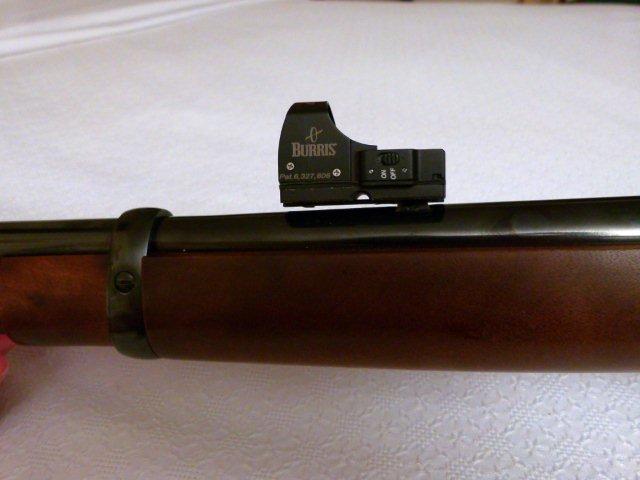 A ver si mañana recojo el rifle de la armería y le hago unas fotos, yo le he puesto un Burris Fastfire y va muy bien. Solo que he tenido que quitar la V del alza.