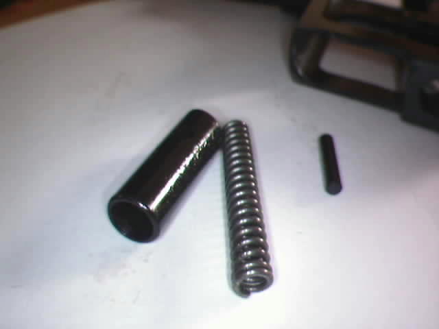 Sacamos el muelle recuperador, uno de los extremos es mas ancho que el otro, es el que apoya en la corredera, el más fino se introduce alrededor del cañón.