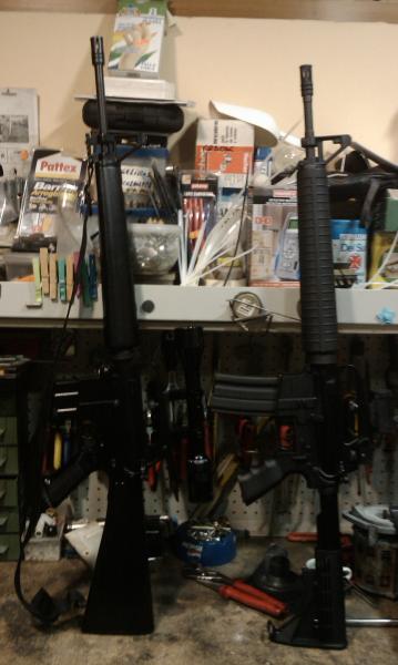 Pues aqui va unas fotos el mio, lo compre hace un par de meses de segunda mano, un Ar15 rifle Olympic con cañon pesado, no sé mucho más.