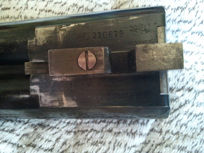 Mi padre me ha regalado una escopeta, se trata de una paralela V.S. Sarasqueta, os adjunto fotos y demás para que podáis ver los detalles, la cosa está en que me gustaría saber qué modelo es, que año, que categoría, cuál es su valor aproximado.